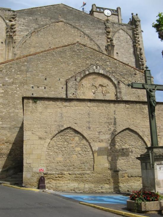 La collégiale est de style gothique (le Maître d’œuvre serait le même que celui qui a construit la cathédrale de Narbonne ?).Cette dernière fut construite sur l’emplacement de la première dès la fin du XIIIème siècle et le projet s’arrêta après la construction des deux dernières travées de la nef et des chapelles latérales. Il est fort possible que la suite de la construction ne s’effectua pas avant la deuxième moitié du XIVème siècle avec des moyens moins importants. L’édifice fut agrandi de deux travées en direction de l’ouest. Moins élevées que les précédentes, elles sont couvertes d' une charpente apparente.